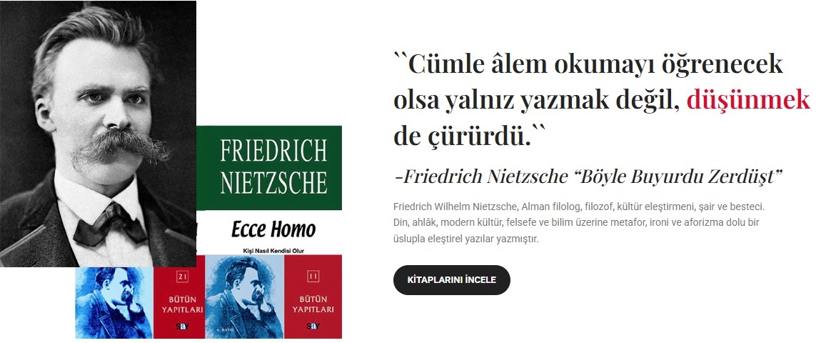 1979'dan bu yana Nietzsche'den Aristoteles'e, Freud'dan Osho'ya insanlığın en büyük düşünürlerini Türk okurlarıyla buluşturuyoruz. Felsefeden psikolojiye, edebiyattan spiritüalizme uzanan geniş bir yelpazede her meraklı zihin için bir kapı aralıyoruz. Çünkü inanıyoruz ki doğru kitap, hayatı değiştirir.